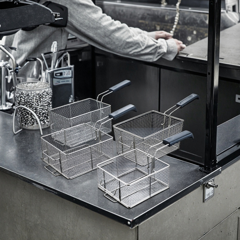 Cesta de freír de fabricación de chapa de acero inoxidable con pantalla de filtro de malla expandida técnica tejida personalizable